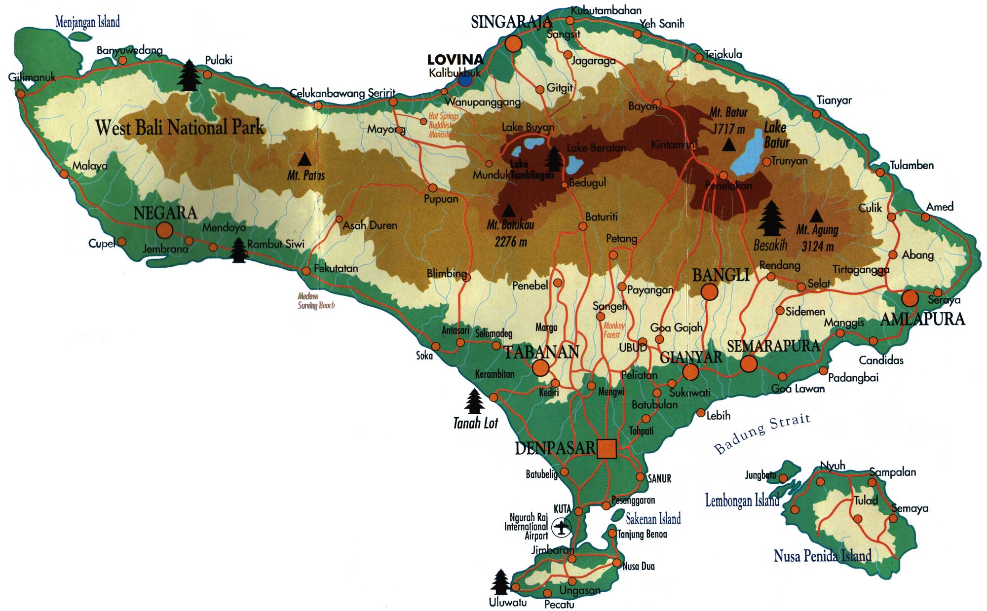klik hier voor een GROTE kaart van Bali (232 kb