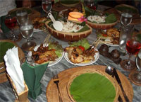 Witte rijst in kokosmelk met groenten, sateh, kip of vis