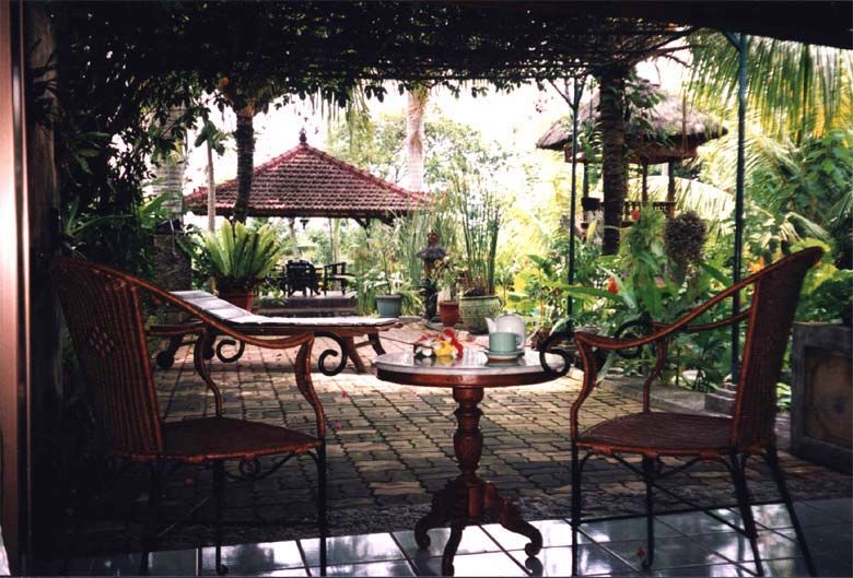 Uitzicht kamer 2 over het terrasje en achtertuin.